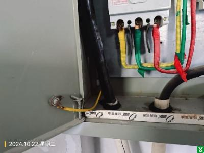 5.隐患:成品库内,西侧墙壁上一配电箱,箱门与箱体连接线不符合要求,且连接不牢。