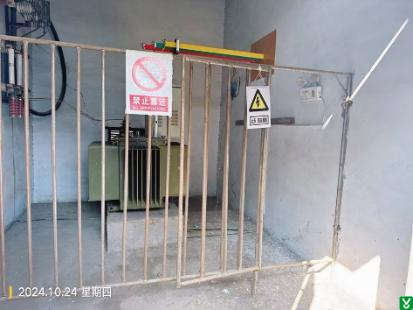 2.隐患:高压配电室内,变压器保护栅栏门未关闭上锁。