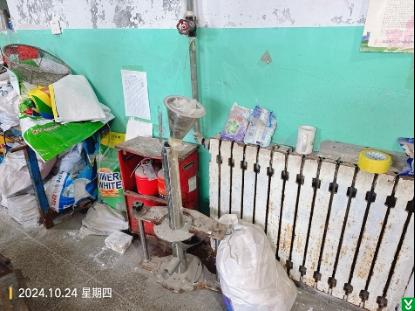 6.隐患:洗衣粉生产车间,一楼地面放置消防栓箱前摆放杂物,影响应急使用。