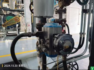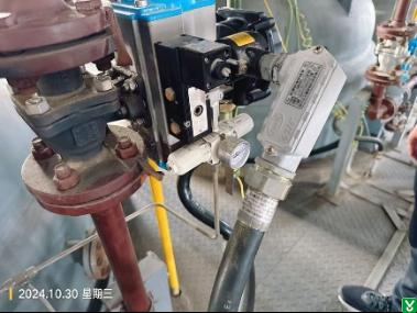 4.隐患:二期新车间二层,乙2反应釜乙醇进料气动阀阀位状态显示窗积尘严重,难以辨别。