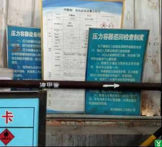 5.隐患:1#生产车间设置的“甲醇钠危化品安全警示牌、压力容器巡回检查制度”等3个标识牌叠放、部分警示内容被遮挡