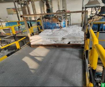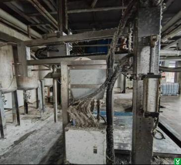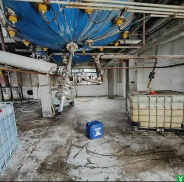 1.隐患:酯化车间二层平台有固体物料堵塞长时间巡检通道