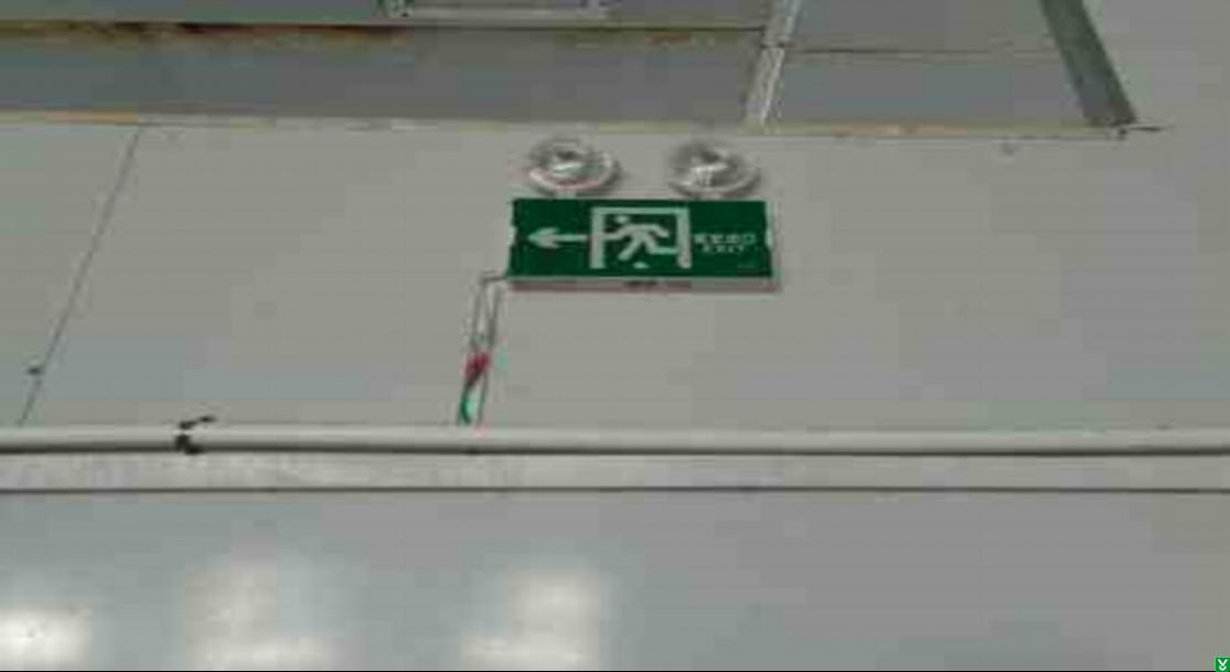 1、装丁车间南侧安全出口标识未通电。