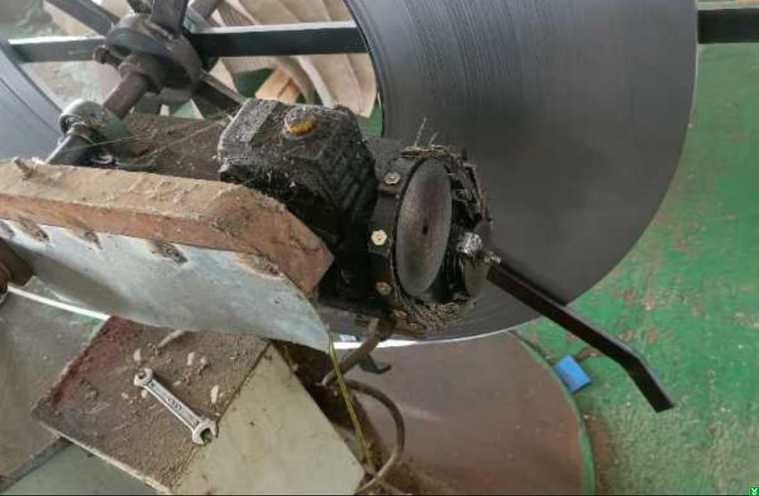 6、车间北侧冲床上料机电机皮带防护罩脱落。