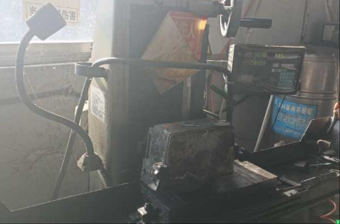 5、车间平面磨床当心机械伤人警示标志脱落。