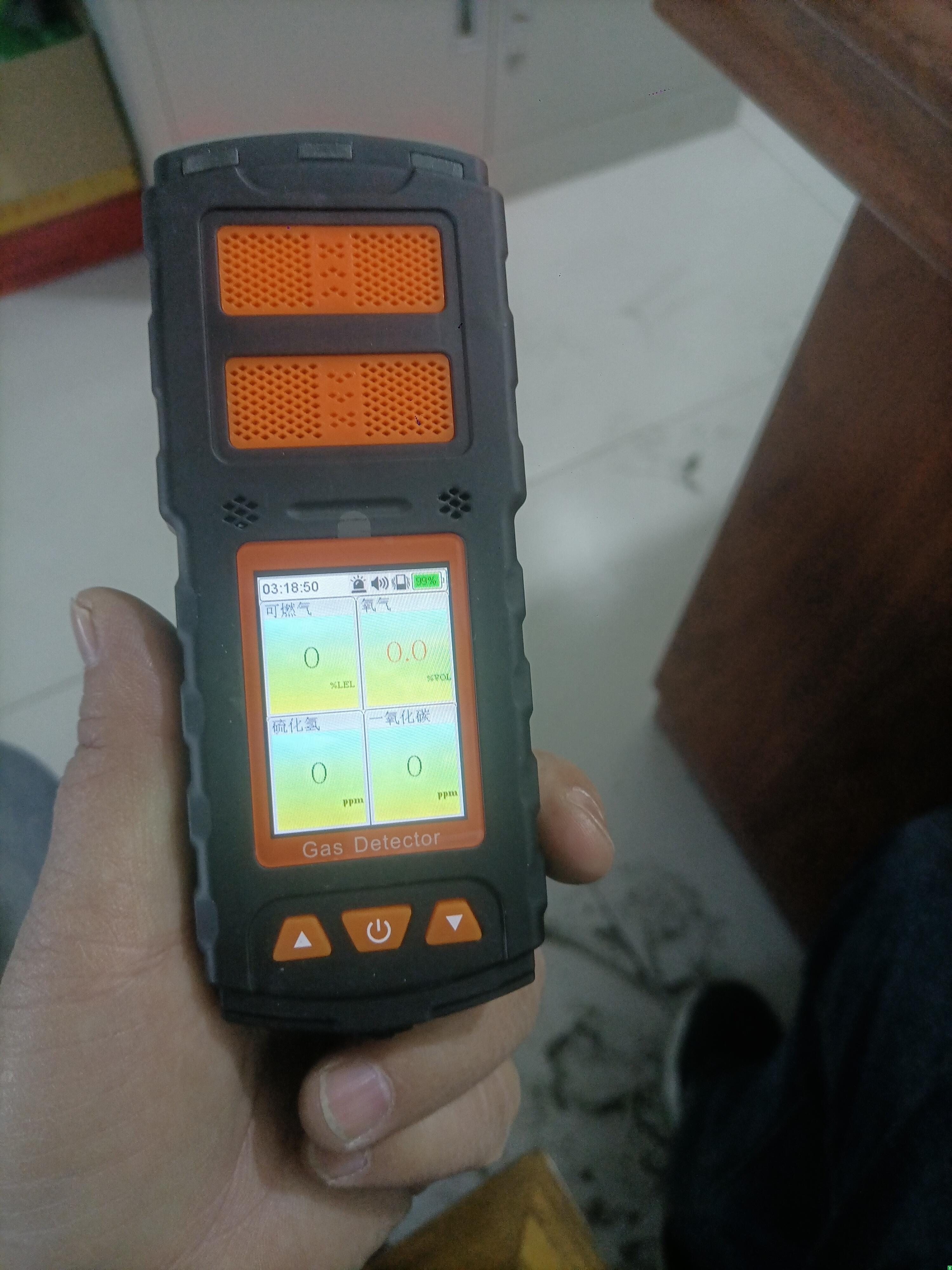 2、便携式(四合一)检测报警仪开机后处于报警状态(氧气含量为0%VOL)。