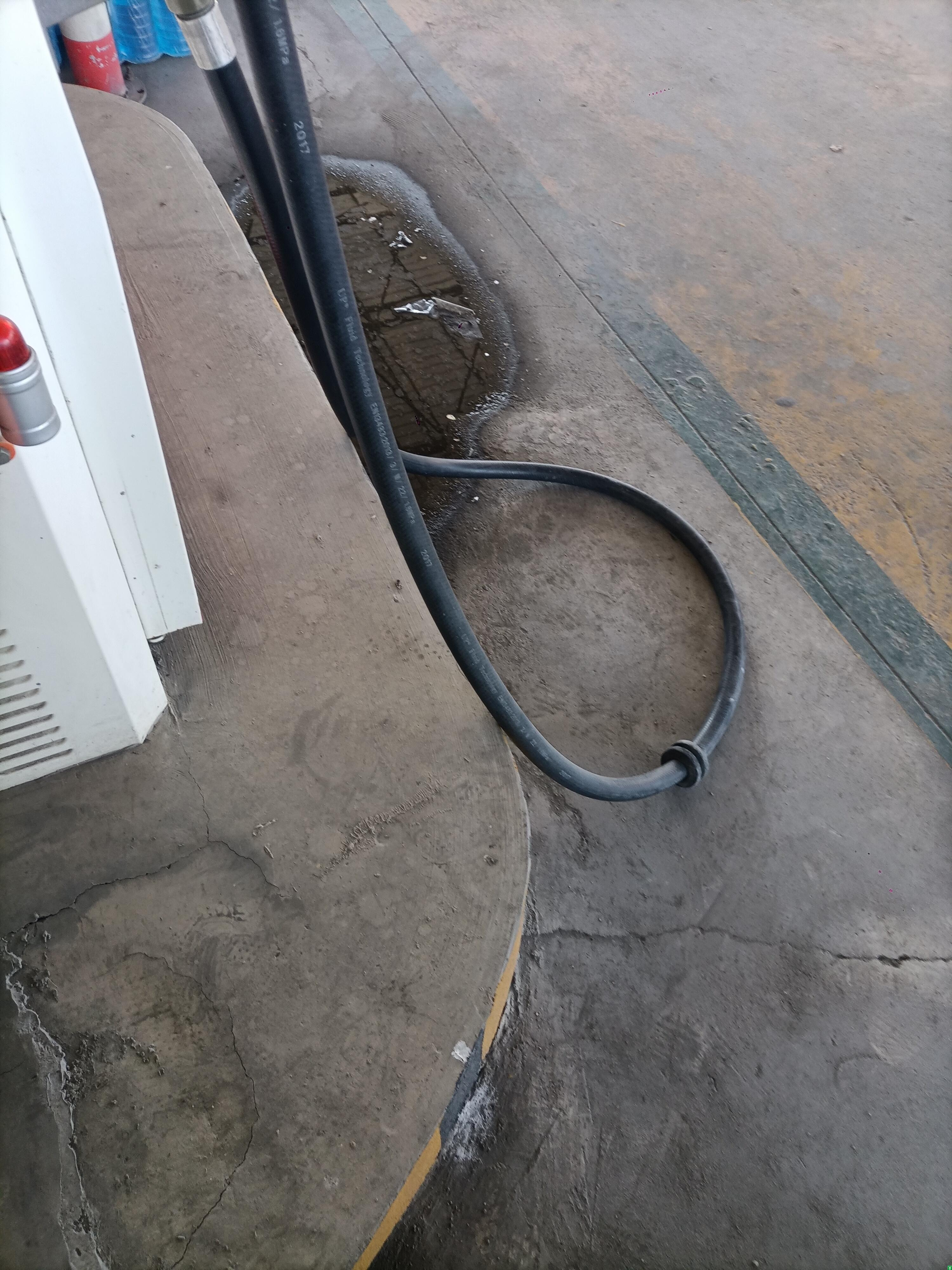 4、加油区内加油枪软管放置在通道车辆通行处,易造成加油枪软管被加油车辆压损。