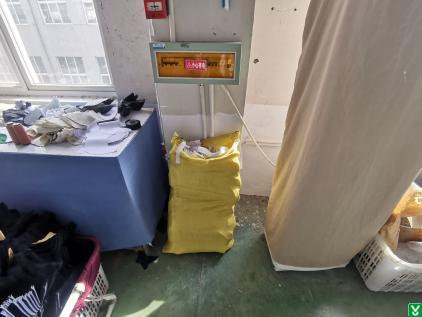 2.六部缝纫一处配电盒下方存放易燃物