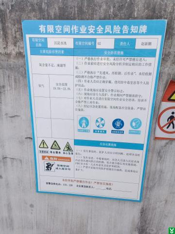 2、沉淀池处有限空间风险告知牌未明确联系人和联系方式