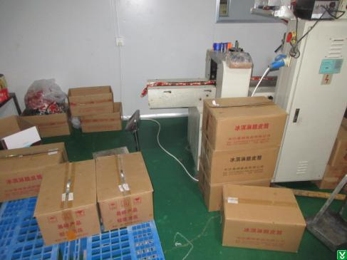 3、包装车间电源线在地面铺设未做防护;