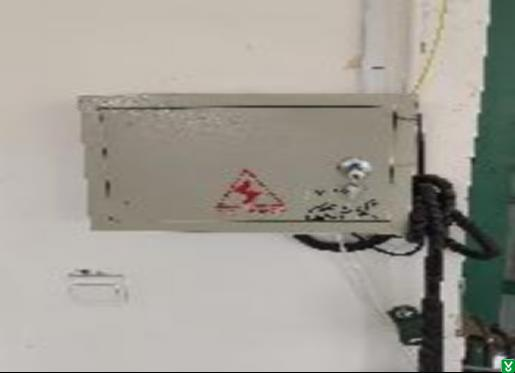 2.二楼提升机配电箱缺少“当心触电”安全标志;