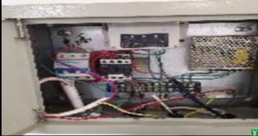 3.二楼提升机配电箱跨接线缺少跨接端子,出线孔缺少防割措施,配电箱内有线头裸露;