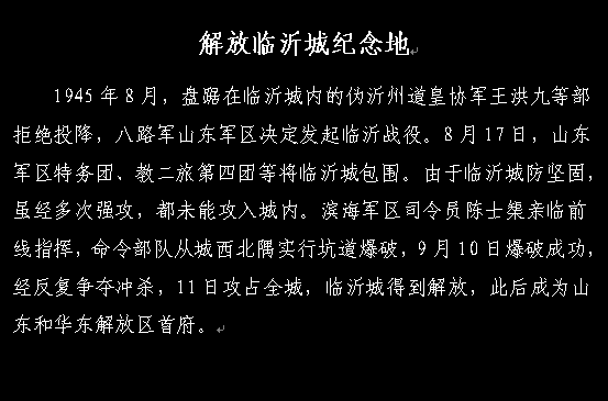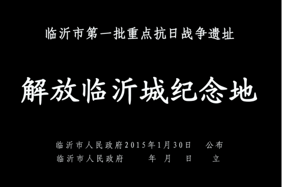 文物保护单位名称——解放临沂城纪念地(隶书或魏碑,居中)