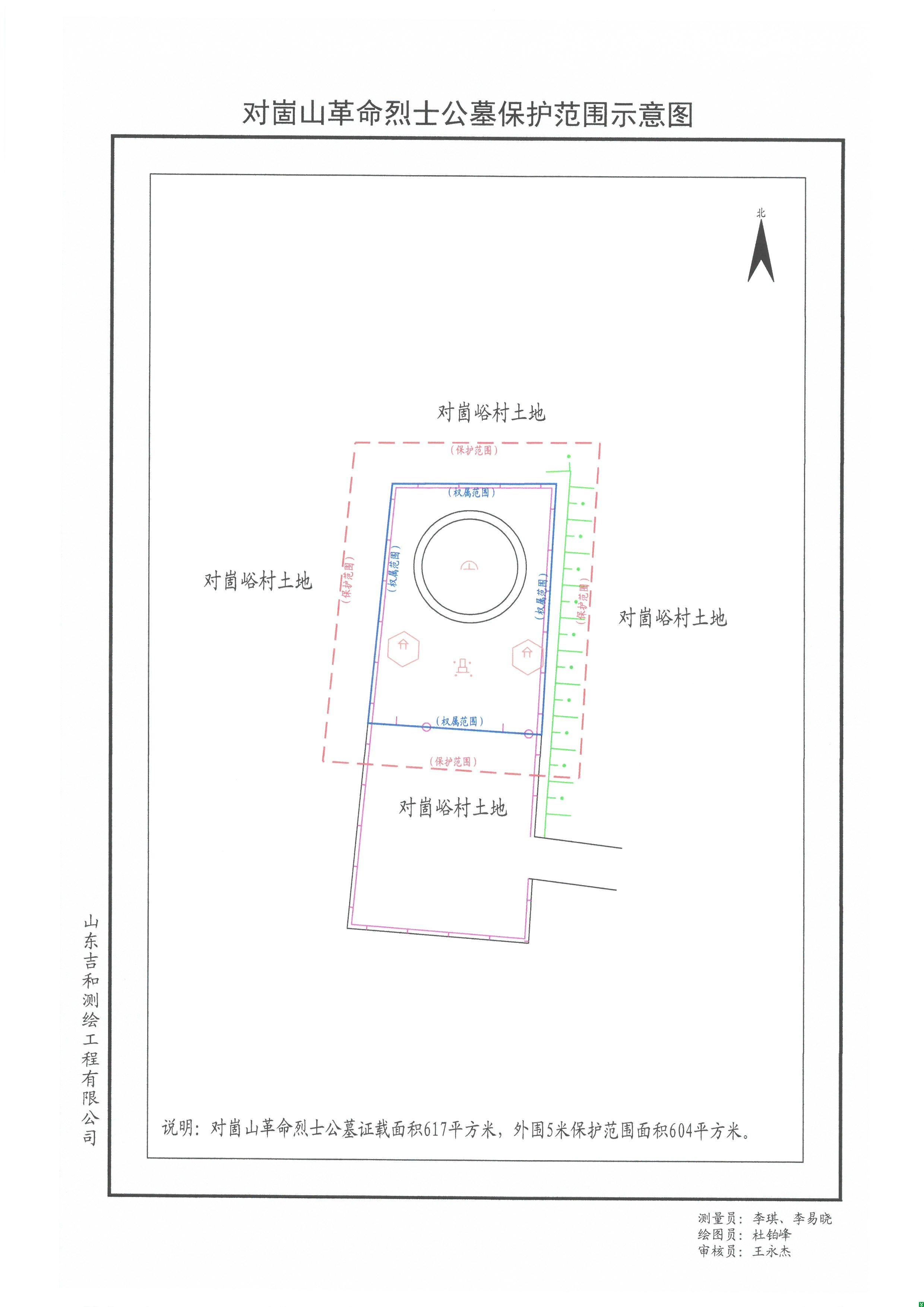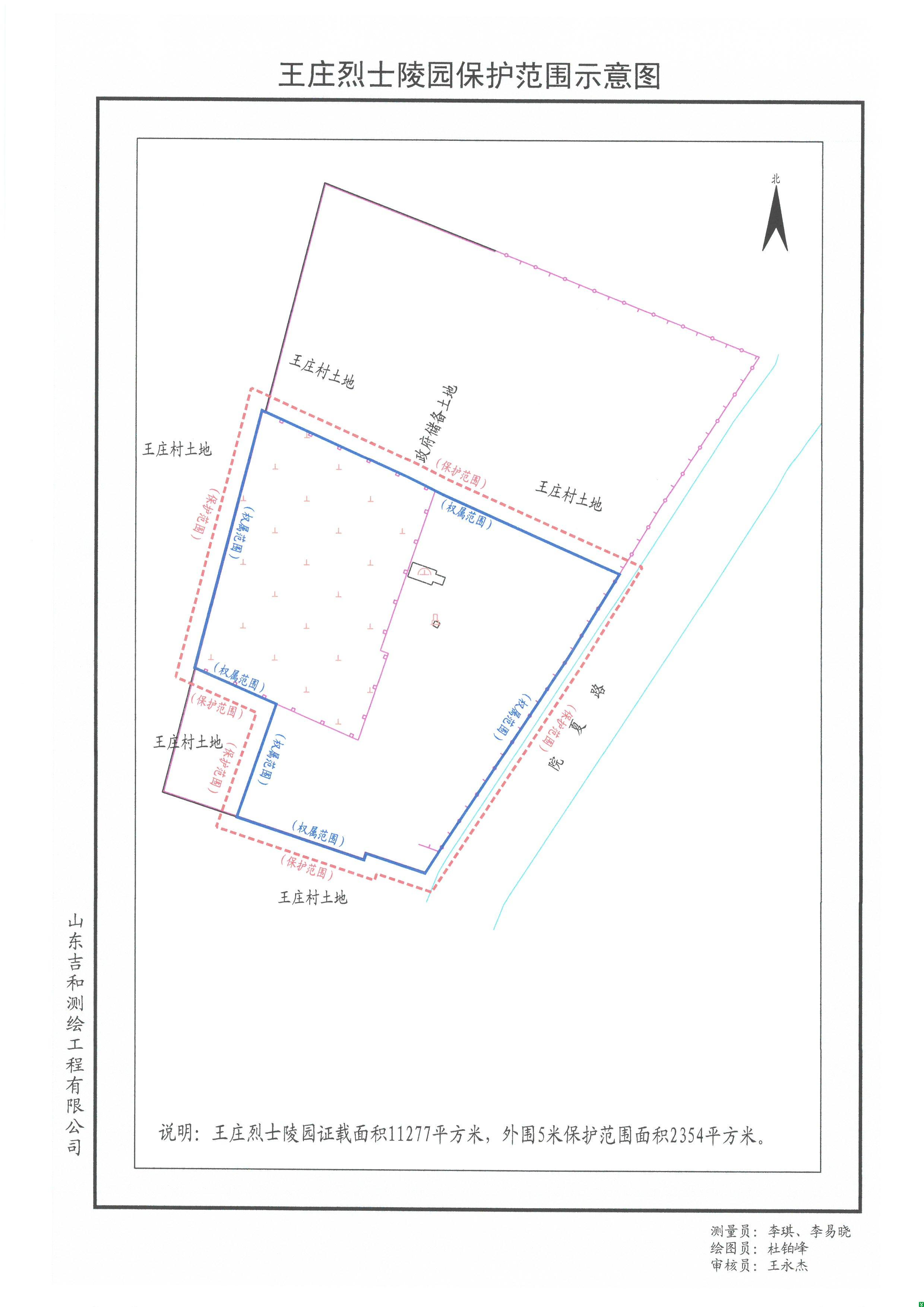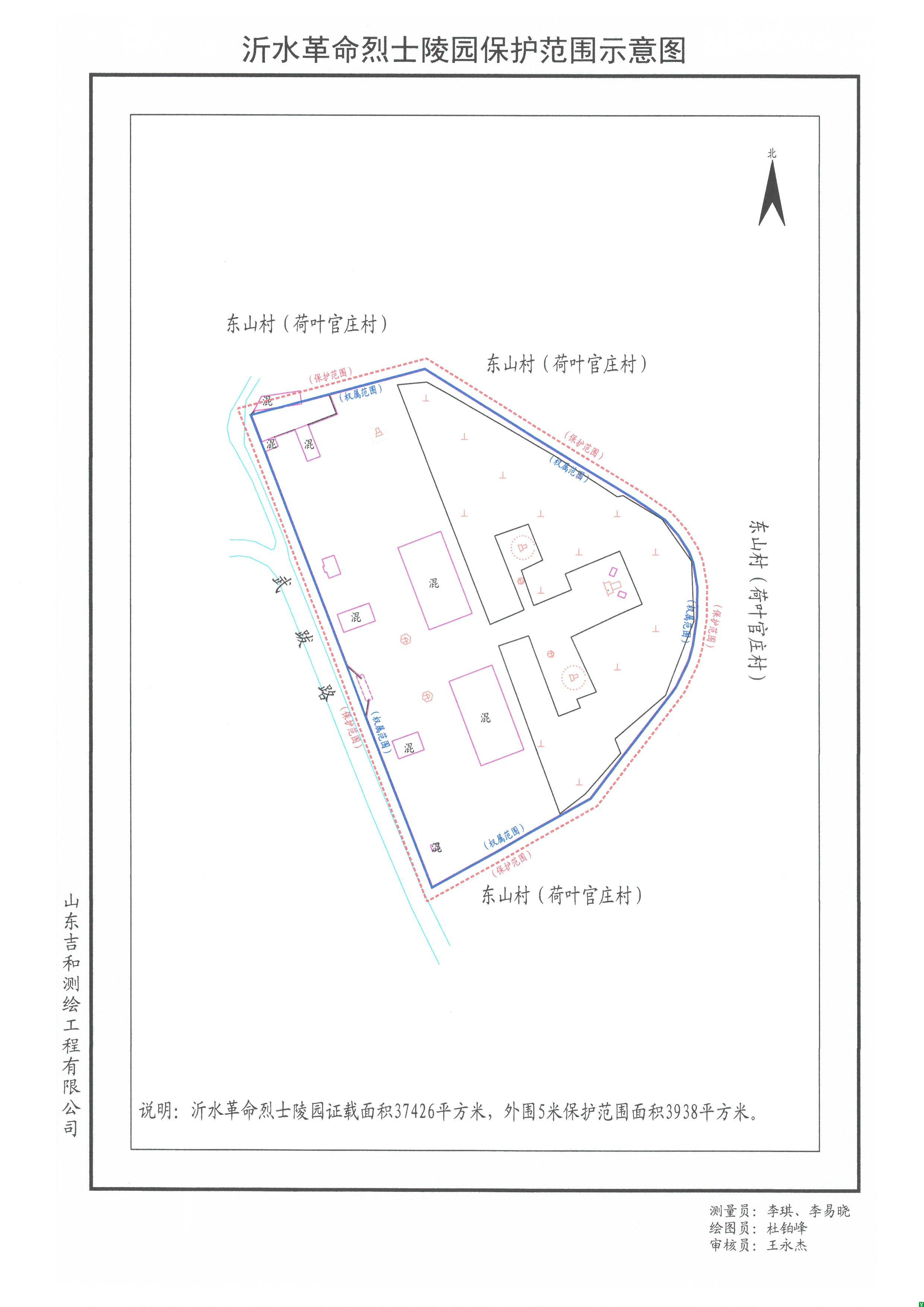 根据《中华人民共和国英雄烈士保护法》《烈士褒扬条例》等政策要求,为进一步明确我县沂水革命烈士陵园、王庄烈士陵园、埠前庄烈士陵园、对崮山革命公墓等4处主要烈士纪念设施的保护范围,县自然资源和规划局、县退役军人事务局对4处烈士纪念设施保护范围进行了划定,其中:沂水革命烈士陵园保护范围为围墙外5米,共计面积41364㎡;王庄烈士陵园保护范围为围墙外5米,共计面积13631㎡;埠前庄烈士陵园保护范围为围墙外5米,共计面积6213㎡;对崮山革命公墓保护范围为围墙外5米,共计面积1221㎡。