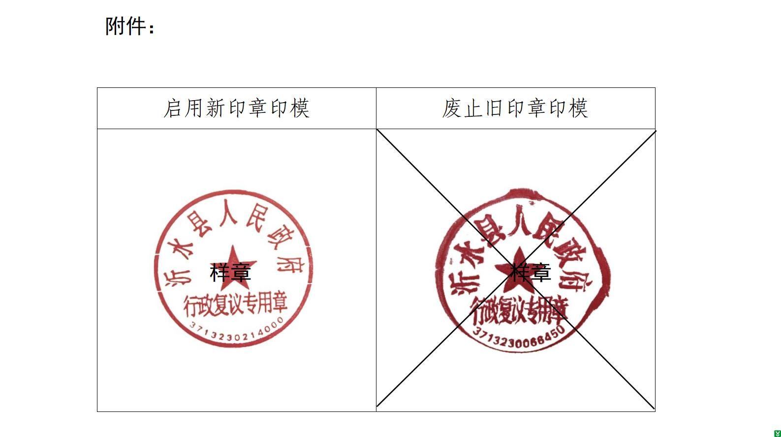 关于启用沂水县人民政府行政复议专用章新公章的通知