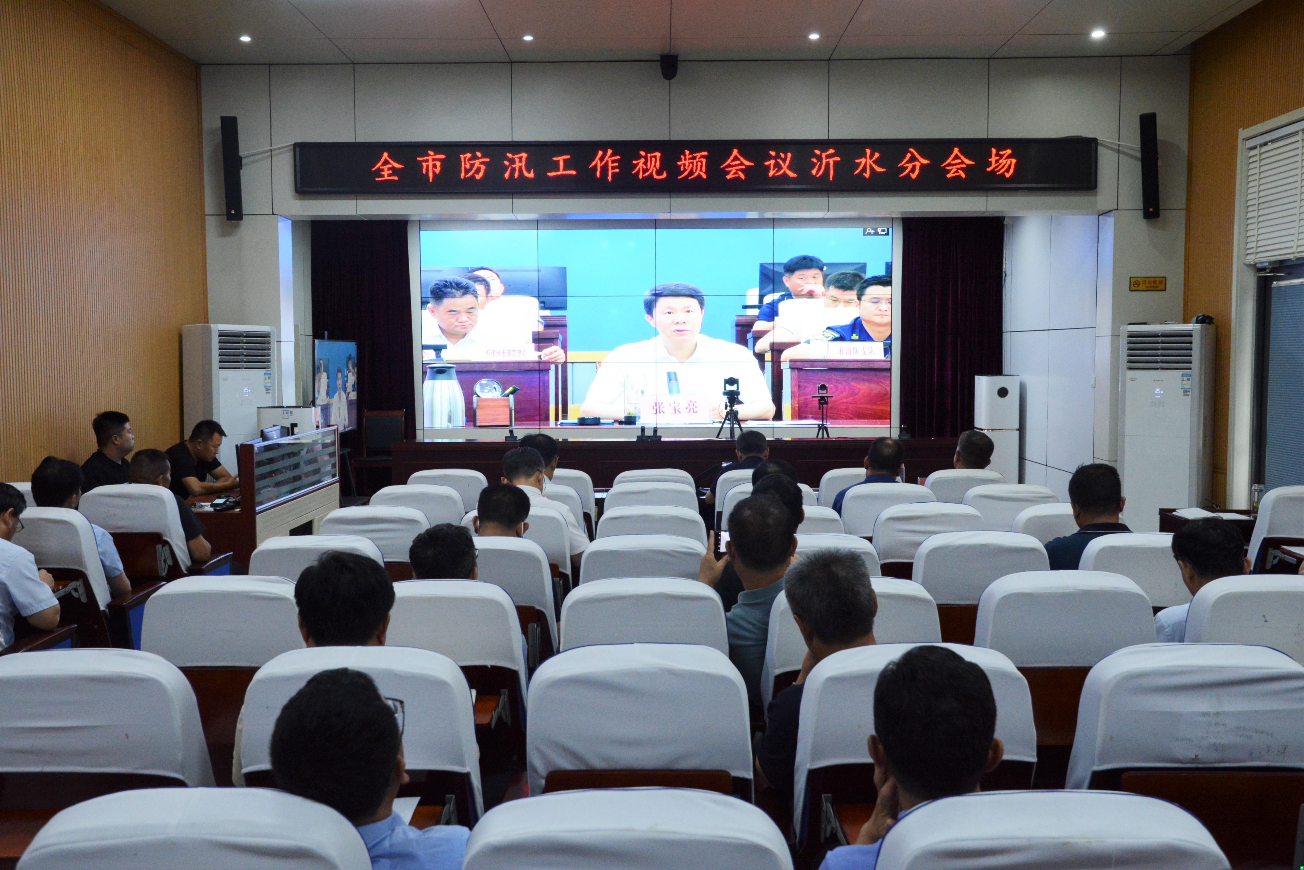 会前,与会人员收看了全省、全市防汛工作视频会议。