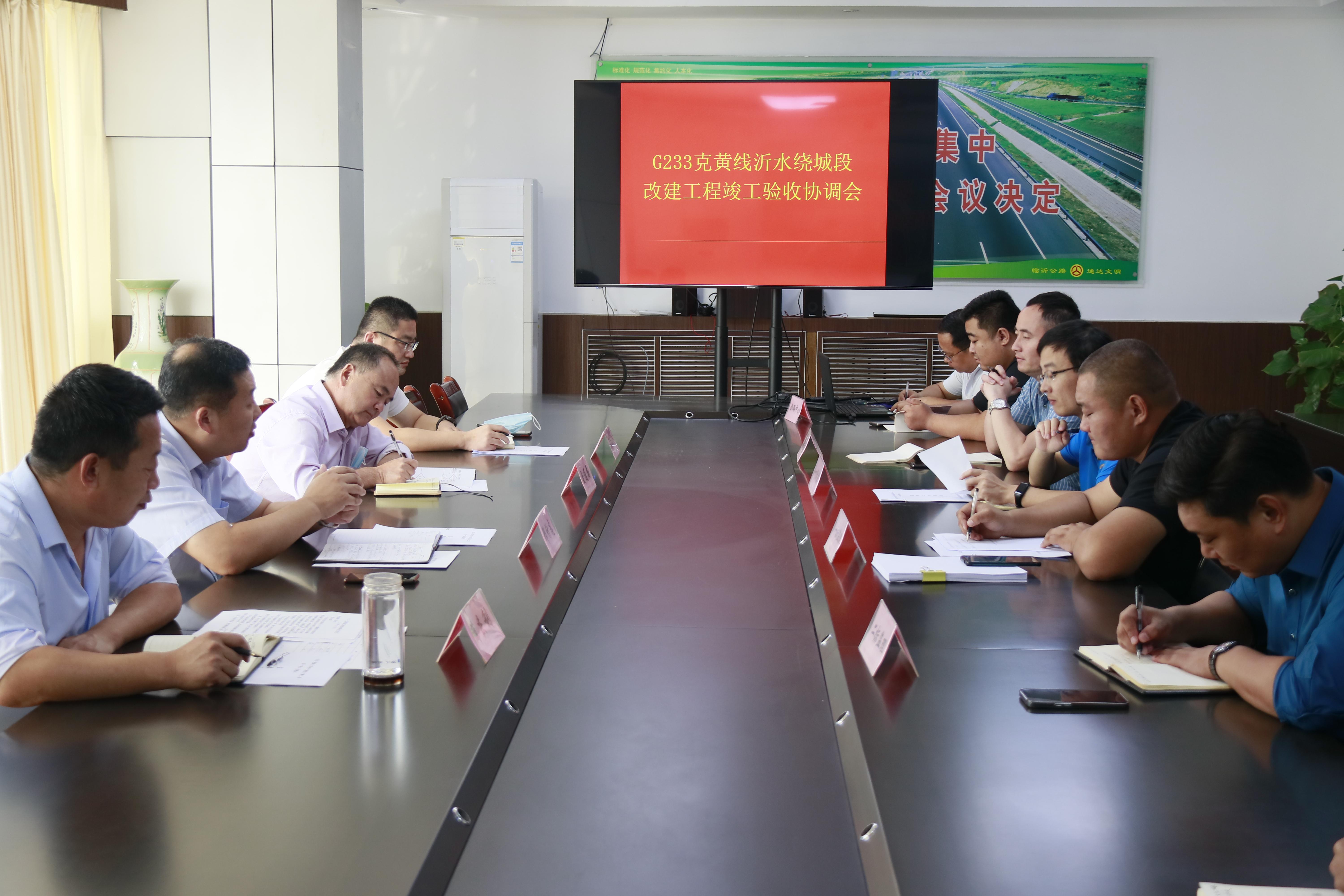 9月30日, G233克黄线沂水绕城段改建工程竣工验收协调会在沂水县公路中心召开,县交通运输局、公路中心、沂水县鼎盛建设有限公司、各施工单位、监理单位相关负责人参加。