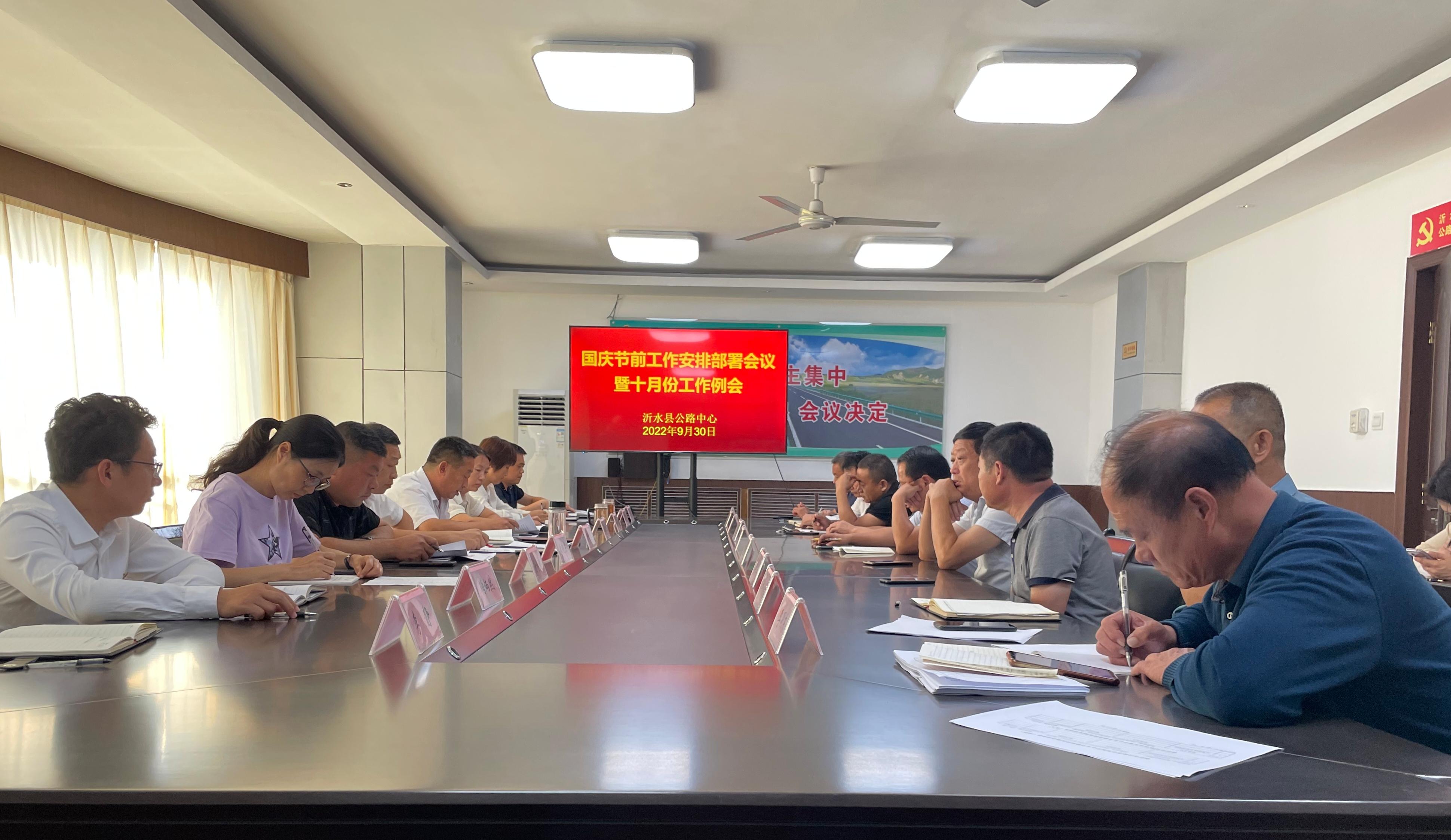 在“国庆节”长假来临之际,沂水县公路中心召开了节前工作安排部署会议暨10月份工作例会,将假期工作、10月份目标任务提前梳理、提前计划、提前推进、提前落实,会议由主要负责人主持,分管负责人安排分管领域内工作,各科室、公路站、小修项目部负责人参加。