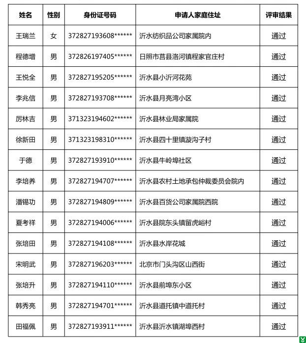 根据《关于印发临沂市职工长期护理保险制度实施方案的通知》(临政办发〔2019〕12 号)和《关于印发临沂市职工长期护理保险实施细则的通知》(临医保发〔2021〕2号),现将沂水县职工长期护理保险2021年度第十二批失能人员评定结果的公示如下,公示期自2021年9月3日至2021年9月7日。