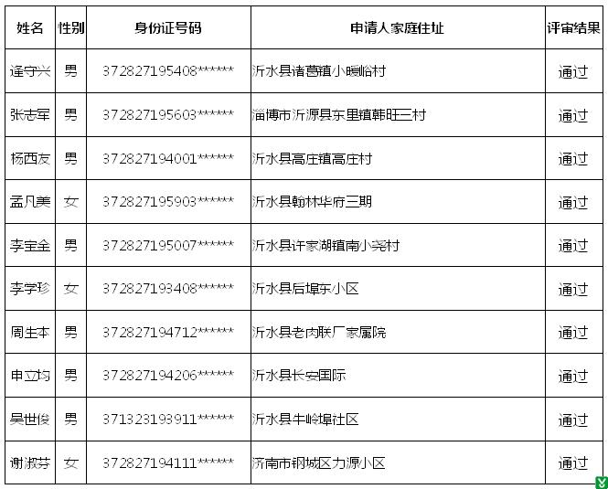 根据《关于印发临沂市职工长期护理保险制度实施方案的通知》(临政办发〔2019〕12 号)和《关于印发临沂市职工长期护理保险实施细则的通知》(临医保发〔2021〕2号),现将沂水县职工长期护理保险2021年度第十九批失能人员评定结果的公示如下,公示期自2021年12月30日至2022年1月3日。