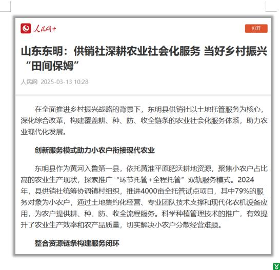 【人民网】山东东明:供销社深耕农业社会化服务 当好乡村振兴“田间保姆”