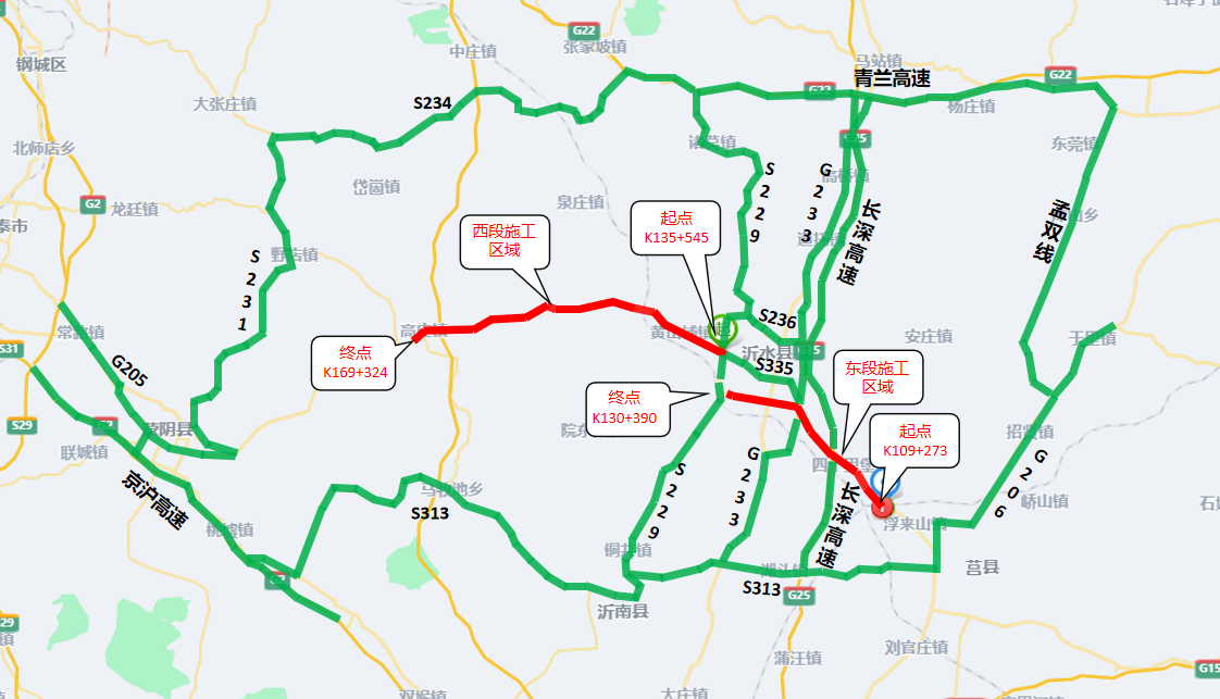 因G342日凤线沂水莒县界至沂河大桥段路面改造工程、葛子铺桥至沂水蒙阴界段路面中修工程路面施工,为确保交通安全和施工顺利进行,根据《中华人民共和国道路交通安全法》、《中华人民共和国公路法》等有关法律规定,施工期间全幅封闭交通。