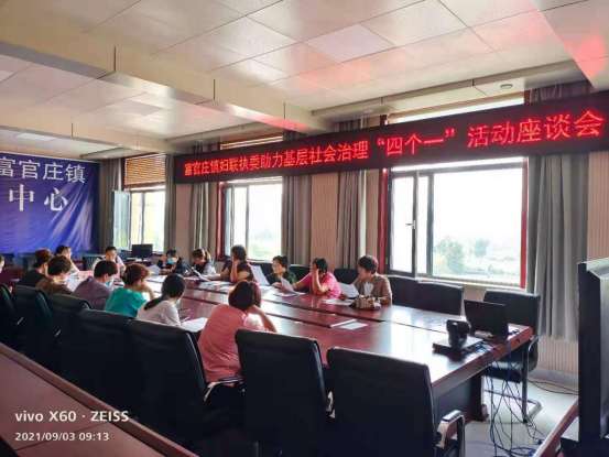 9月3日,富官庄镇组织部分社区妇联执委召开妇联执委助力基层社会治理“四个一”行动座谈会。