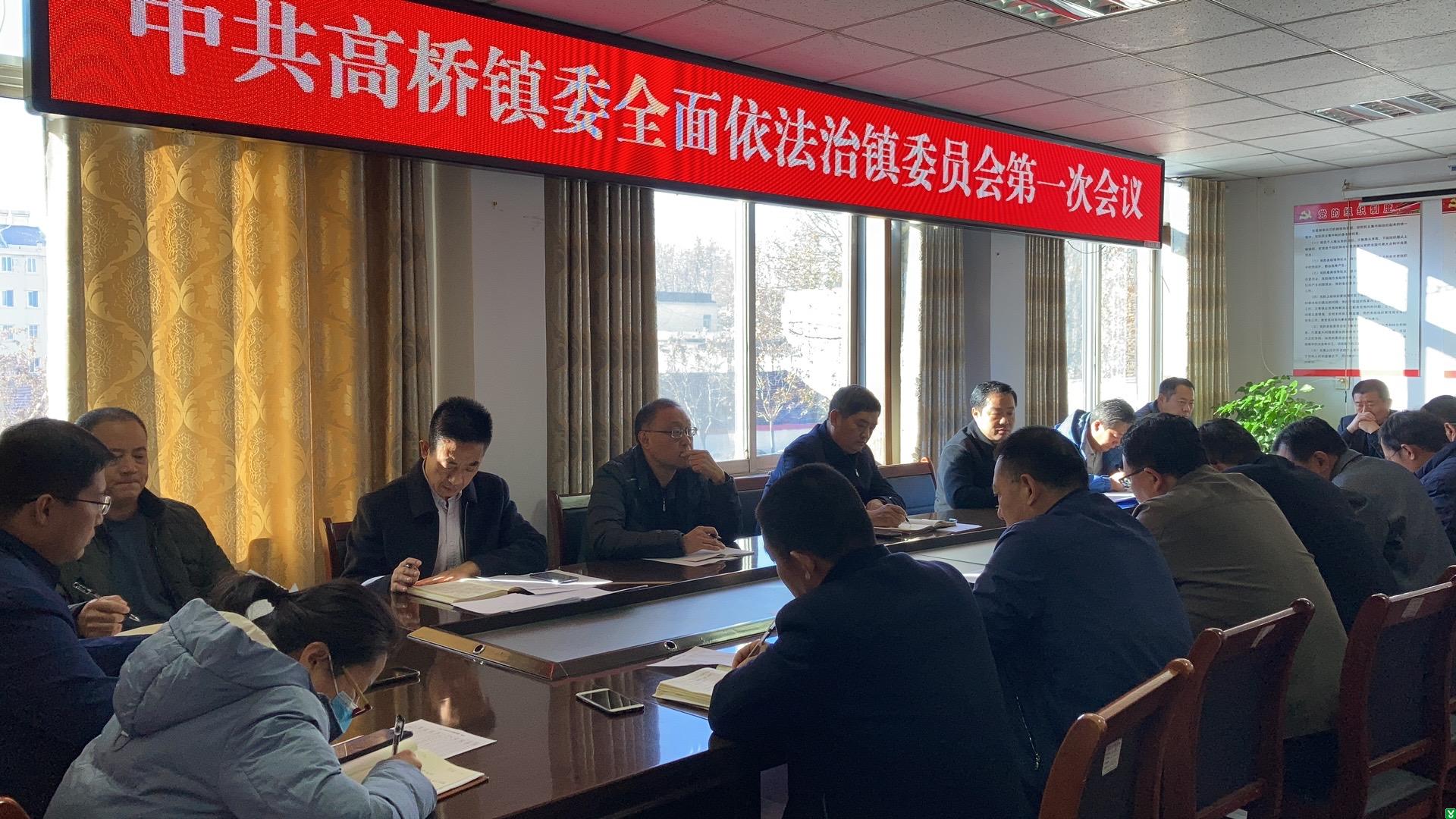 2020年11月23日,在高桥党委二楼会议室召开了高桥镇委全面依法治镇委员会第一次会议,主要任务是传达学习县委全面依法治县委员会第三次会议精神,研究镇委全面依法治镇委员会有关工作。