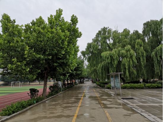 6、学校设置了专门的环形运动场地,环形跑道长200米,直跑道100米,为草皮操场;