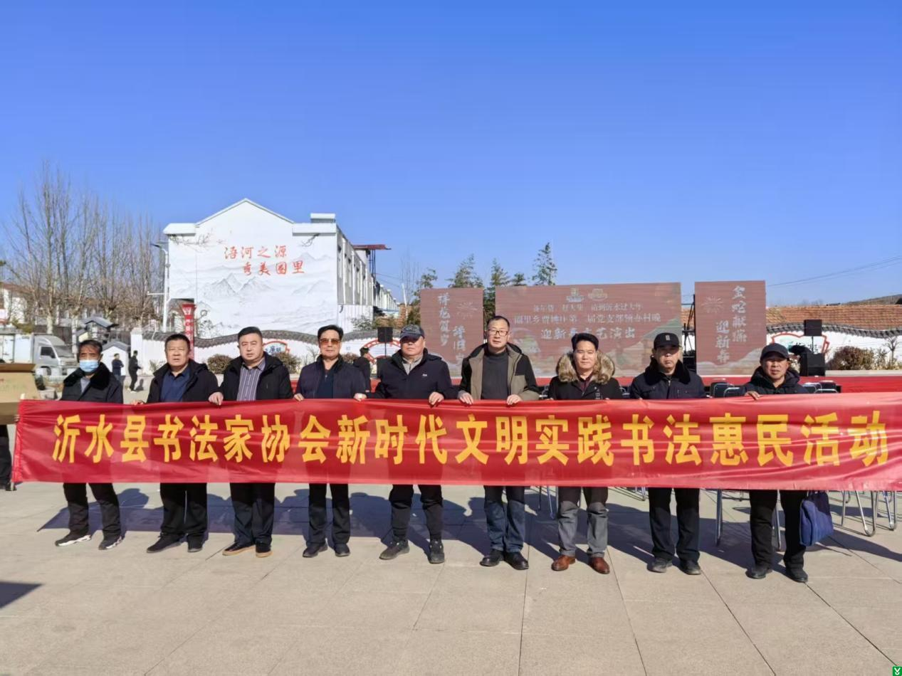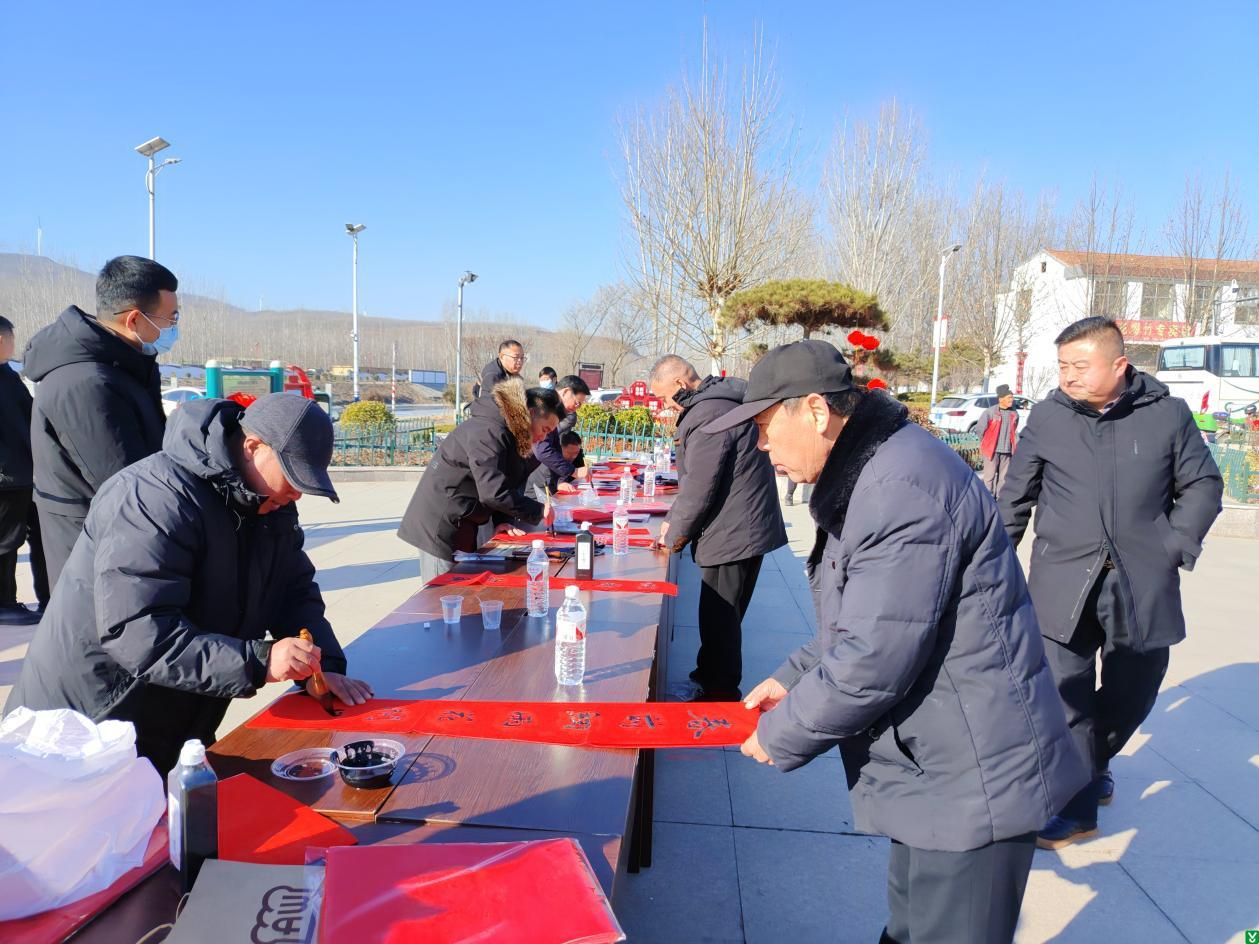 广场一角,沂水县书法家协会新时代文明实践书法惠民活动也在如火如荼地进行着,来自沂水县书法家协会的书法爱好者们正泼墨挥毫,给乡亲们送上一份份新春的祝福,一副副对联给广场穿上了一件红色的新衣。