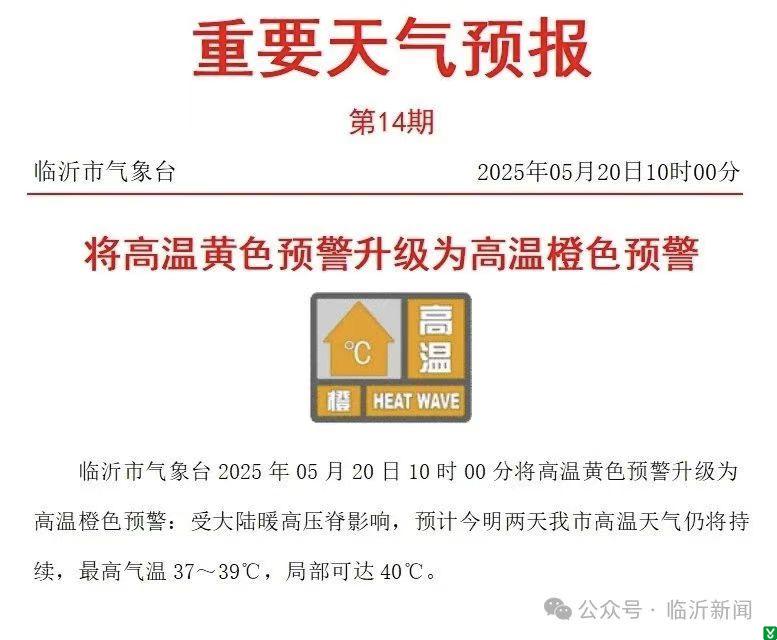 预警升级!40℃!刚刚,临沂发布重要天气预报