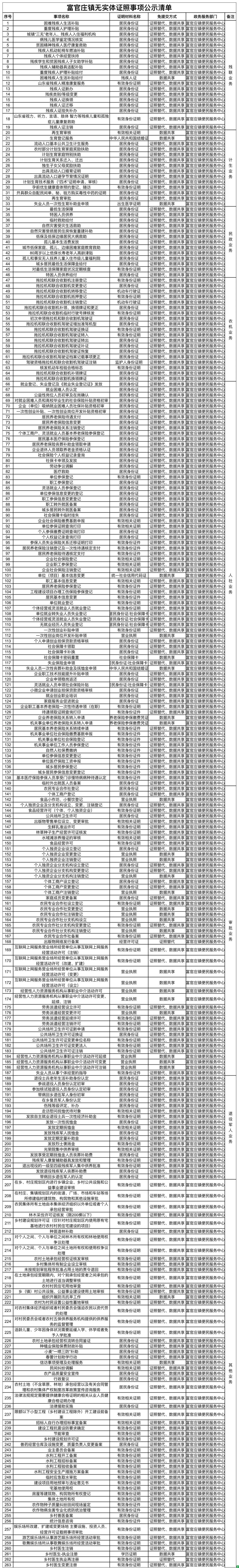 富官庄镇便民服务中心免证办事项清单公示(2023)