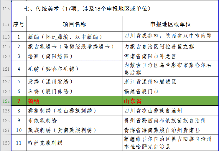 12月18日,国家文化和旅游部发布《关于第五批国家级非物质文化遗产代表性项目名录推荐项目名单的公示 》,高桥手绣(鲁绣)予以公布。