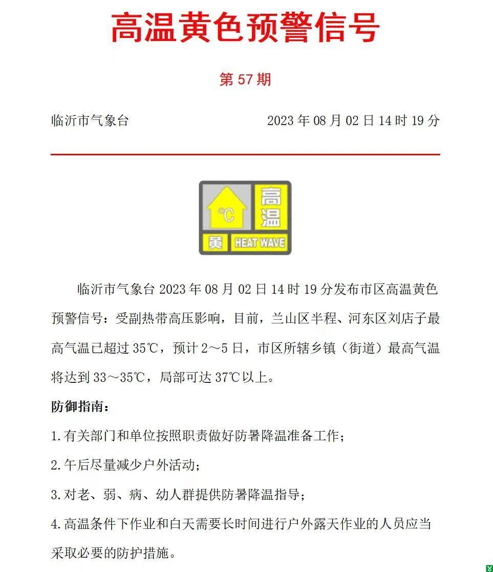 | 标 题: | 刚刚!临沂发布高温预警 | ||