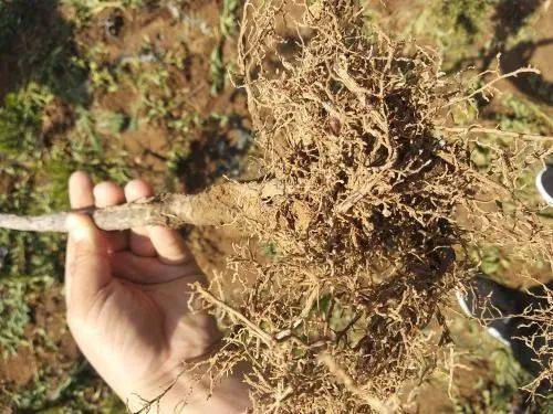 补救措施:一般不宜发现根部冻害,对于出现根部冻害的部分,待来年开春气温稳定后挖去培土或浮土,松土透气待地温回升后,用“快胜跟”生根粉或 “好倍力”生根液+“根大夫”防治根部病害,杀菌剂+“富源肥”微生物菌剂根施、灌根,生根同时防治根部病害再补充营养。