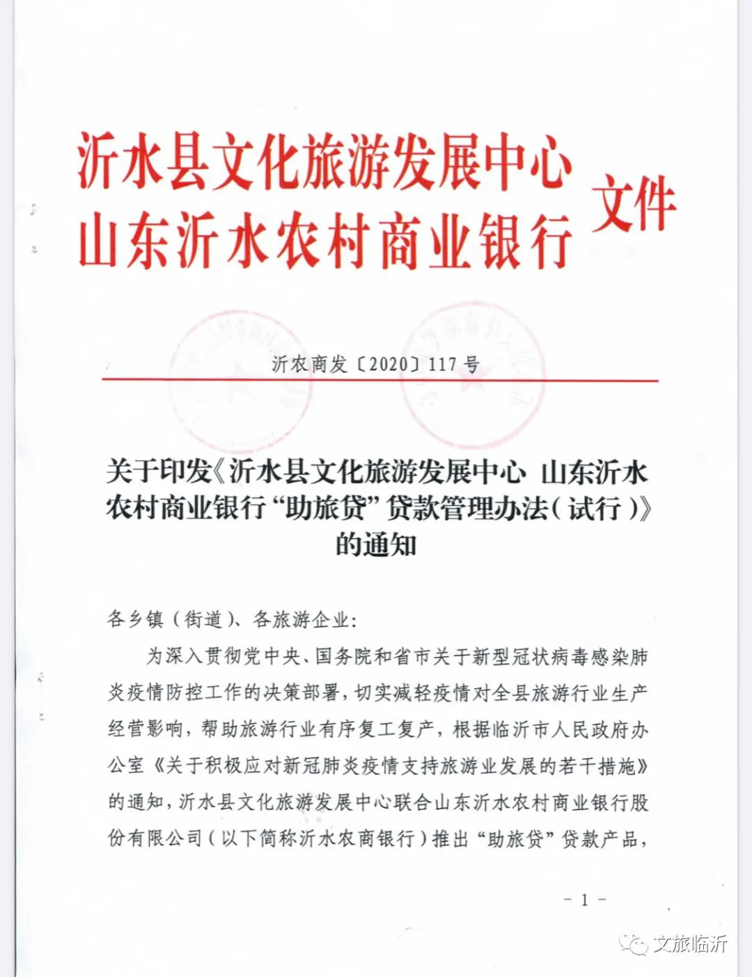 为减轻疫情对旅游行业生产经营影响,帮助旅游行业有序复工复产。3月18日,沂水县文化旅游发展中心联合山东沂水农村商业银行股份有限公司(以下简称沂水农商银行)推出“助旅贷”贷款产品,并制定了《沂水县文化旅游发展中心山东沂水农村商业银行“助旅贷”贷款管理办法(试行)》(以下简称《办法》),帮助旅游行业解决资金难题,开创先河暖人心。